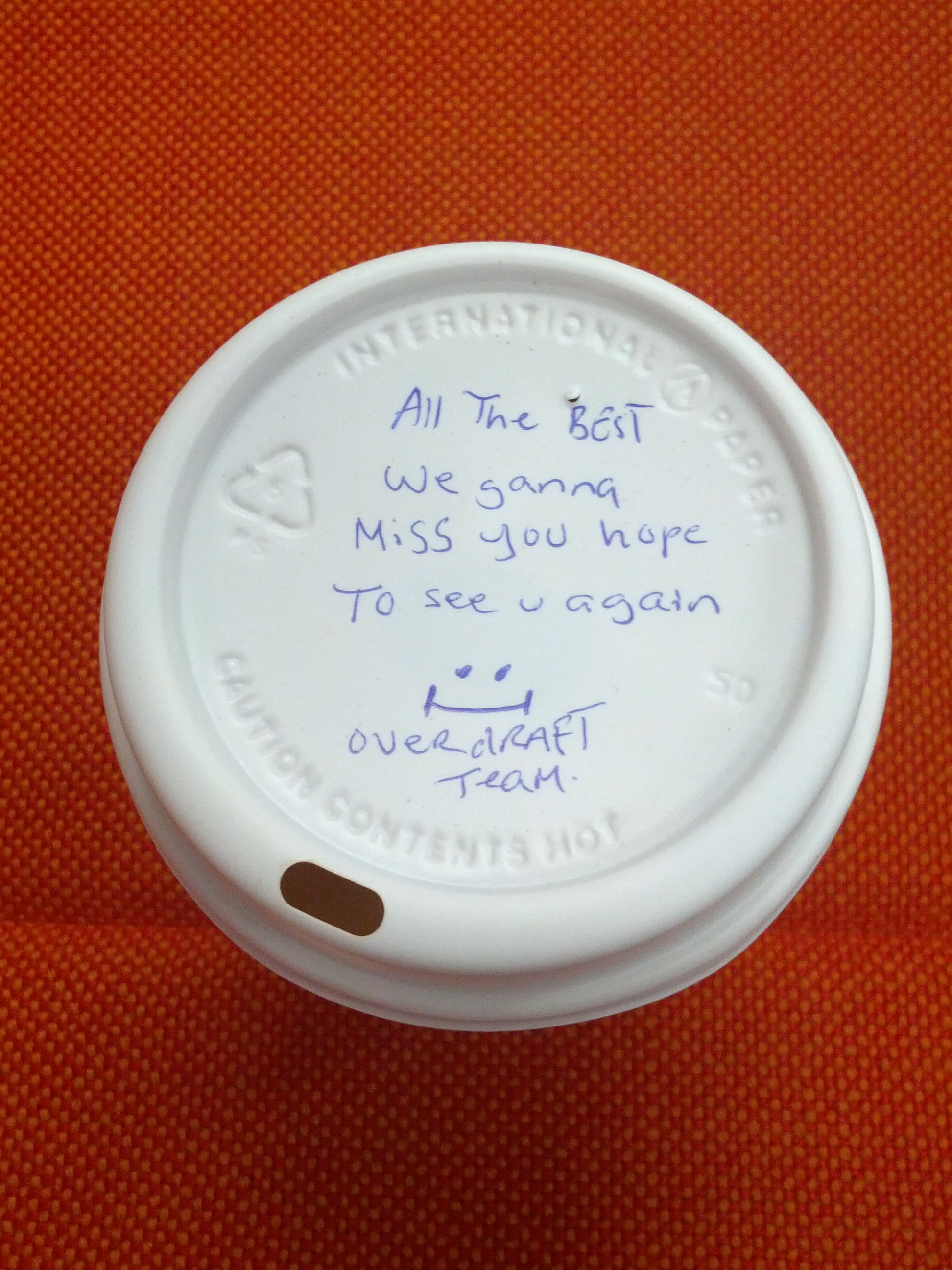 Nice little surprise on my coffee cup lid this morning! Does this mean I drink to much coffee?? Either way, the coffee culture in Melbourne is something I’m going to miss.