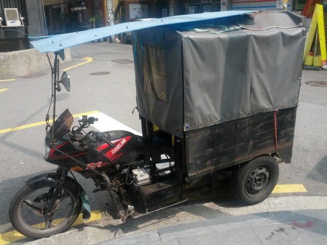 I saw this today and I’ve realised I’m on the wrong bike! THIS is what I should have taken. I like trikes anyway, but this hybrid bike, trike and truck is just great. Imagine how much stuff you could get in the back? Maybe even sleep in there? I’ve seen one with a windscreen too.
