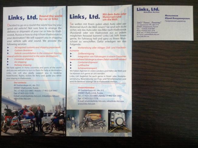 They seemed marvellously efficient, so as long as things to well this morning we’ll be back on the bikes. Yuri gave us some marketing material, and as we had such a good experience I’ve put it in the blog.