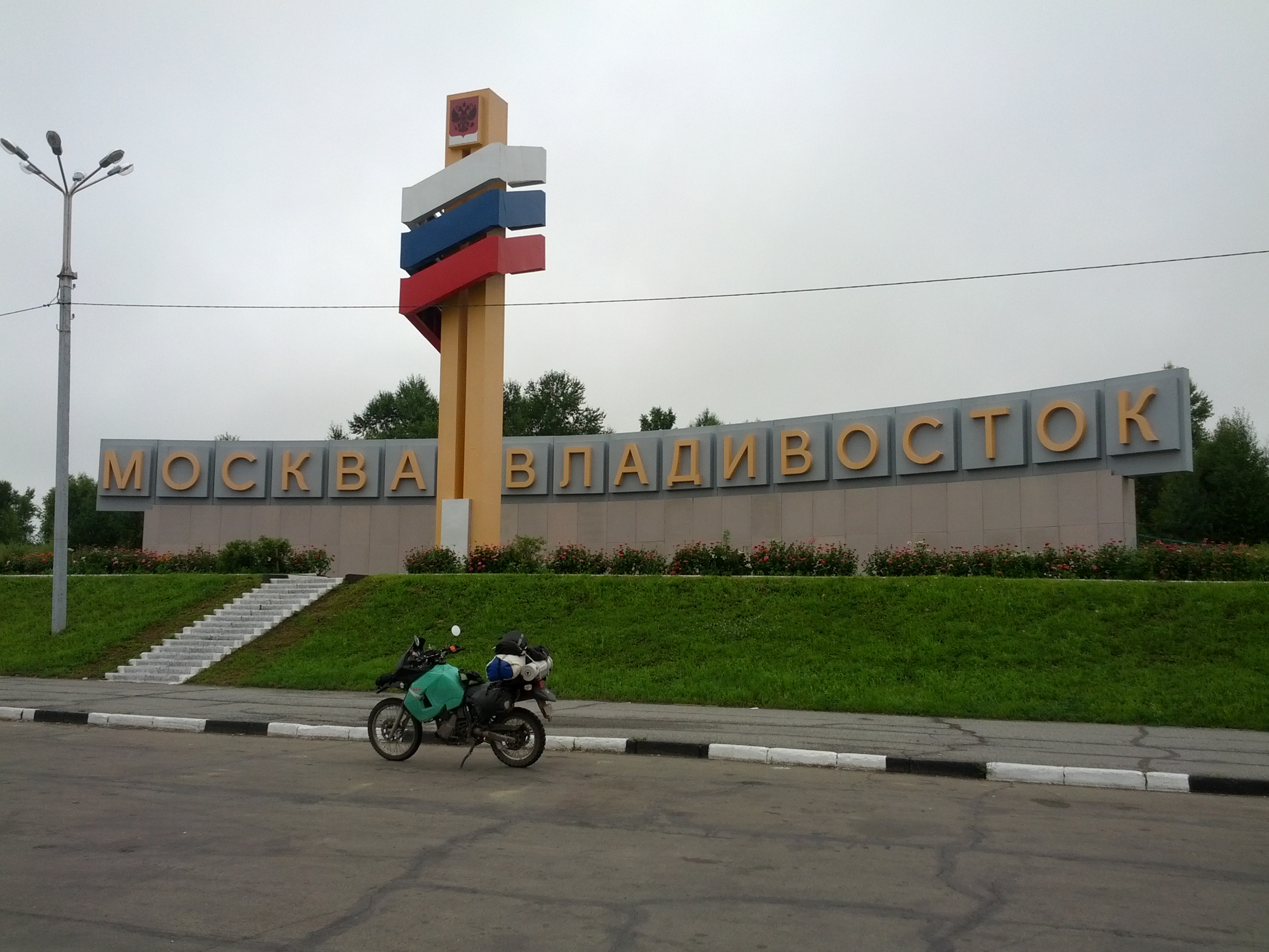 We passed a big sign and monument announcing that the road goes from Vladivostok to Moscow, which means we’re on the right road. Not too difficult as there’s only the one main road. We took a detour to Ьлаговещенск to have a quick look at China. The river separates the two countries, with many Russians going to Keihe on the ferry for a days shopping.