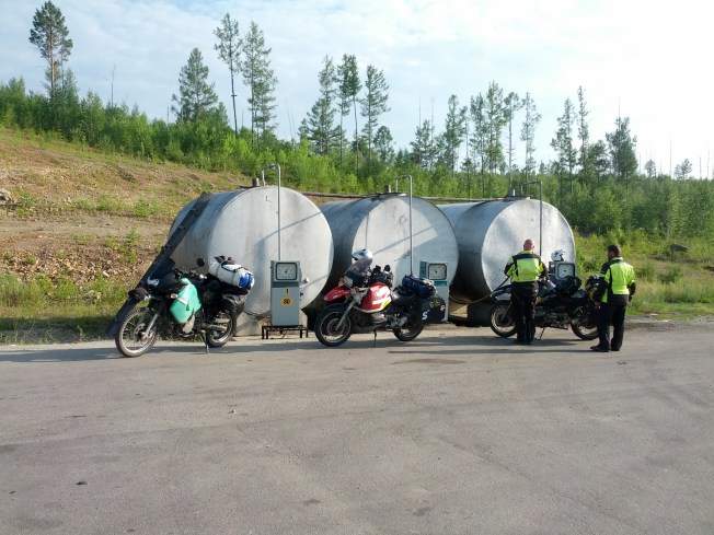 Hand over a thousand rouble note though and all is good. You take as much fuel as you need and they give you change. Or the pump shuts off at 1000RUB. Either way that’s plenty for a days riding. This station was an all in one stop with a guestinitza and restaurant.
