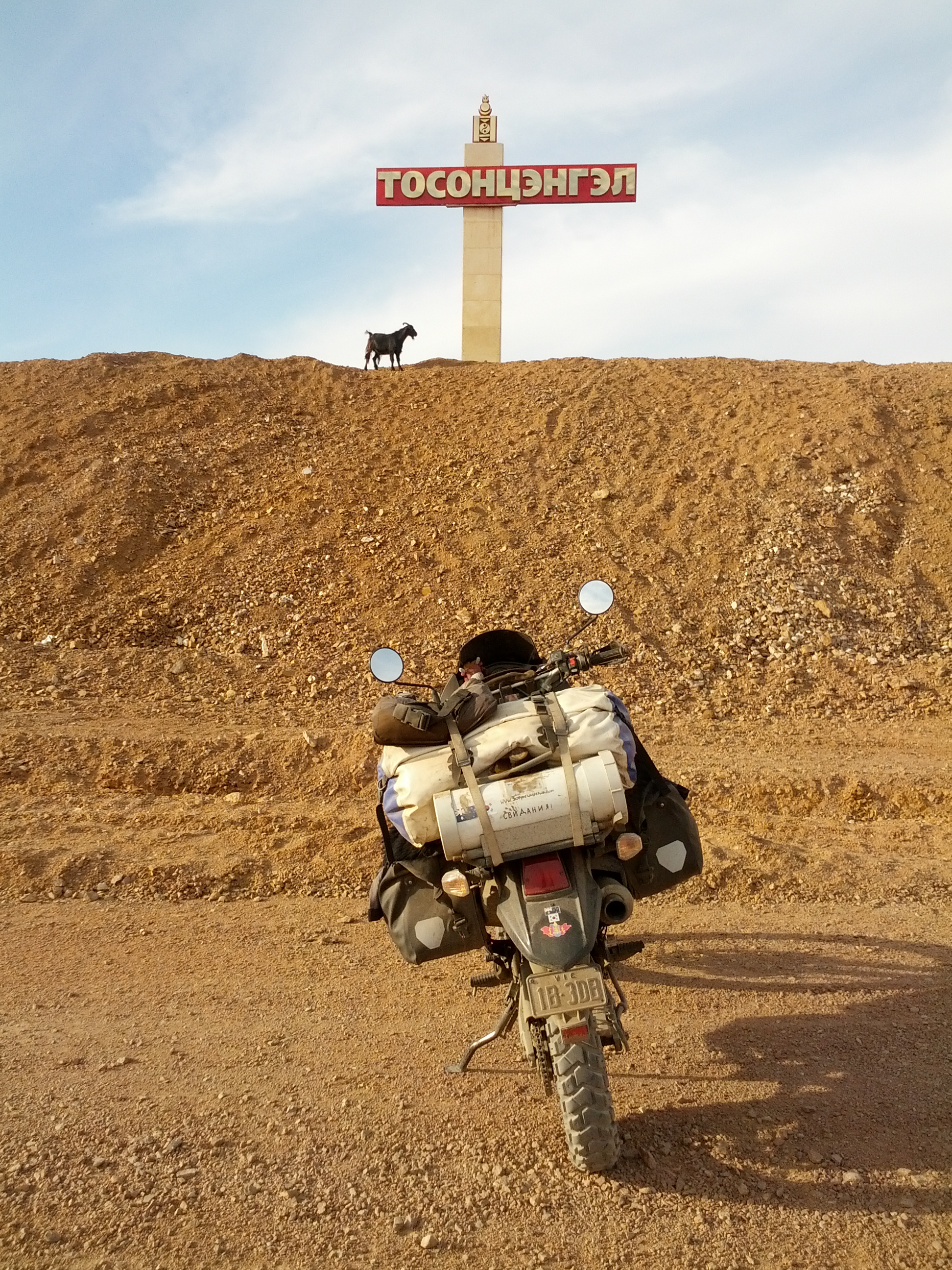 After a long day I finally pulled into the sprawling metropolis of Tosontsengel. There was a welcoming committee (see photo). Most of the day was fun riding, all dirt or track or steppe. I found fuel and topped up, needlessly really as I’m carrying enough to get me into Russia. The land is so barren though that running out isn’t an option.