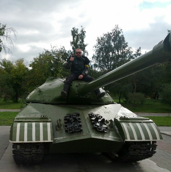 I asked the next passer by if they would mind taking my photo. A guy of about 50 took my phone without saying a word. I motioned him to stand back whereupon he fell over backwards. At that point I realised he was completely pissed! It took me by surprise as it was only 11am. He wouldn’t give back my phone and motioned me to get on the tank.