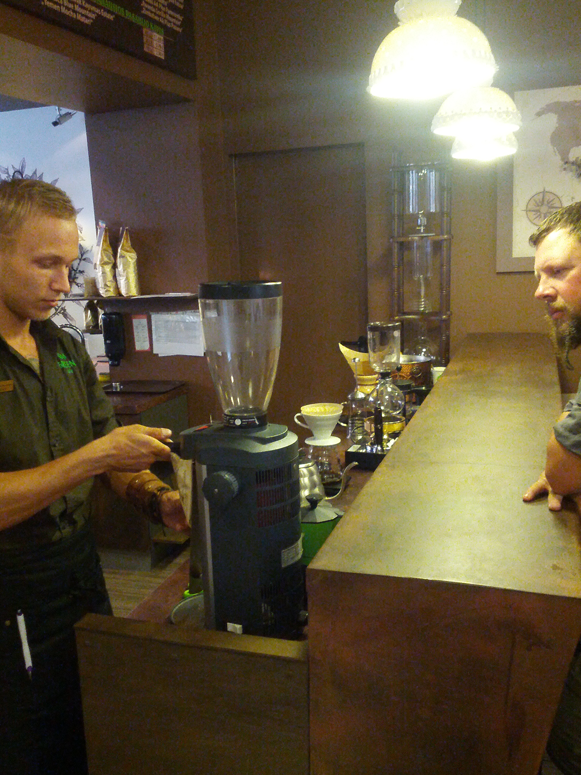 Next to the hostel I stayed at is the green cafe. The owner of the hostel told me the coffee there is excellent, so this morning Chip, Ken and I went to see. The brew bar is where you can choose from 21 different types of coffee. Once you’ve selected your beans, there are then 9 different ways to have them brewed to choose from.