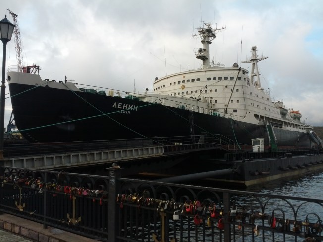 This is the world’s first nuclear icebreaker, the Lenin. Apparently you can go aboard and have a look around. I haven’t discovered how, but Ed is asking around for us.