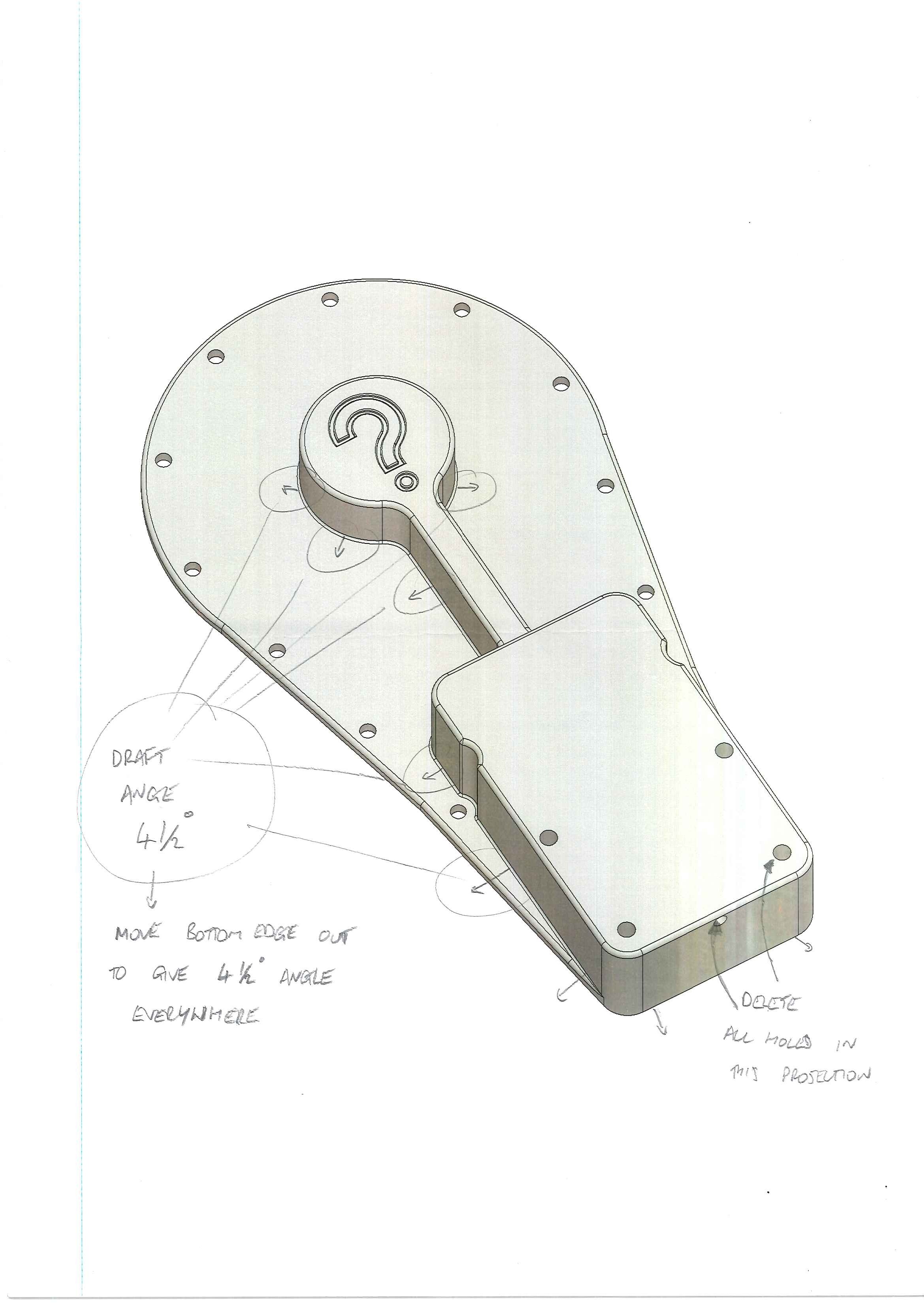 "Oh, I can make one in wood. Just not in metal". Really? Oh ok, well that makes perfect sense. I’ll ask my drawing office (Gary at work) to do me a favour and modify the drawing to what I think the pattern should look like. A cup of tea with Bob and quick chat later, I had a set of marked up printouts ready to forget to take to work for a few weeks. I safely delivered them today and wait patiently for the amended CAD files.