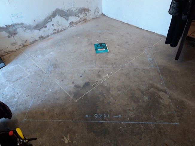 In anticipation of potentially getting some extra machines, I’ve been clearing out the garage. With an empty floor I thought I’d mark out the area required for the Bridgeport Mill, according to the manual. It’s huge!!