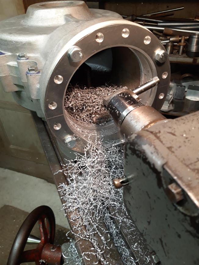 Boring out the throat and it’s going quite well so far. No chatter and everything seems to be rigid enough. The old Denbeigh Mill is performing well.
